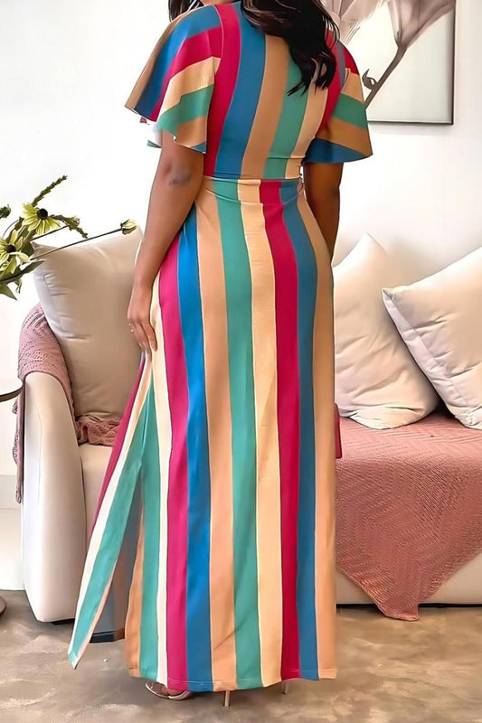 Traje maxi de moda y sexy con abertura, en chiffon ligeramente elástico.